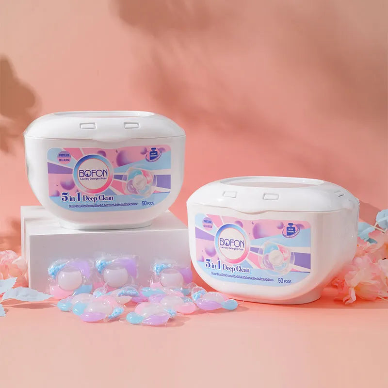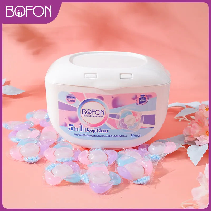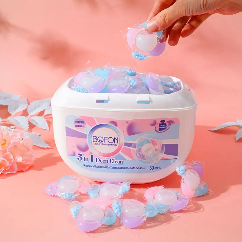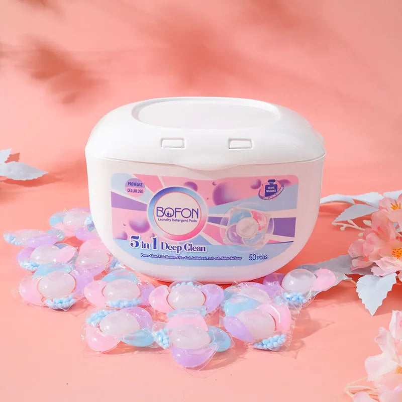 5 in 1 Laundry Detergent Pods, English Pear & Freesia, 12g x 50 Count, Multi-Chamber Beads